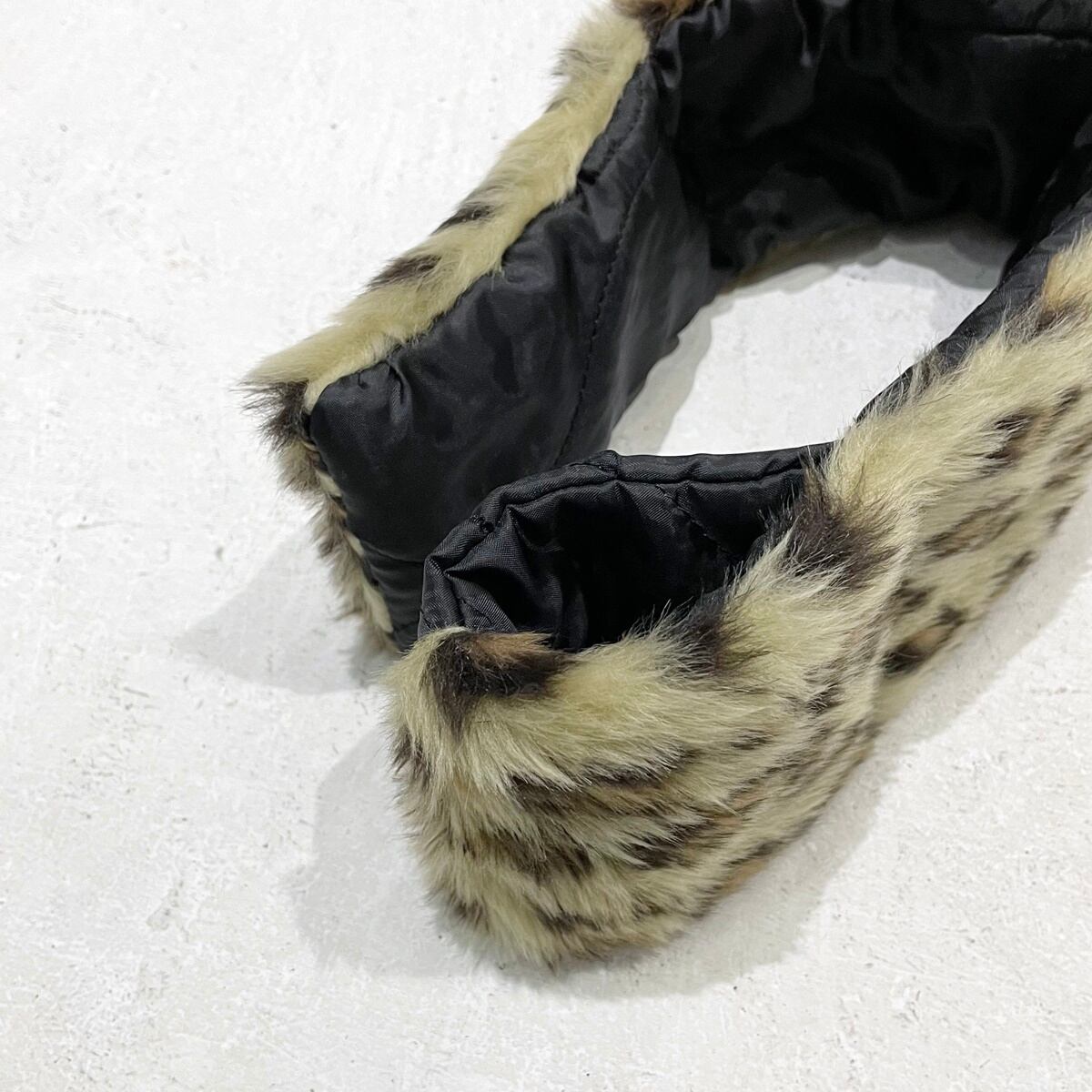 毛足の長いレオパードファーとキルティングを使用したティペット(マフラー)。