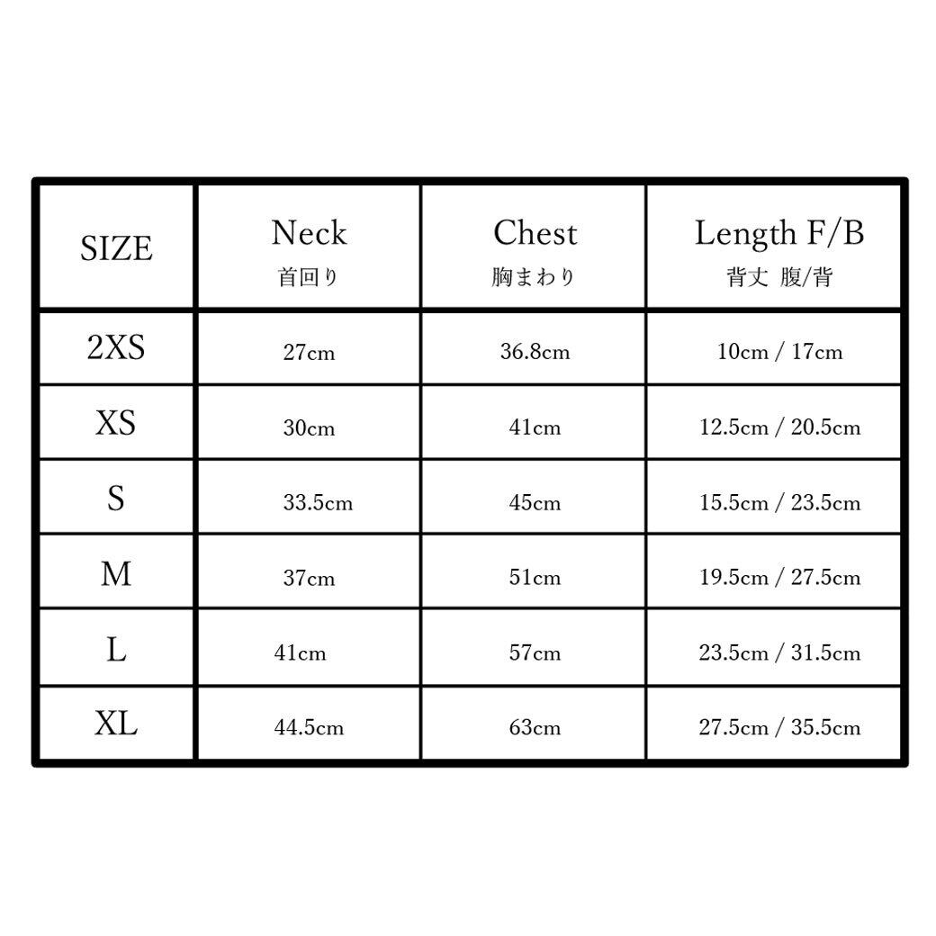 2XS:首回り 27cm 胸回り 36.8cm 背丈 腹/背 10cm/17cm